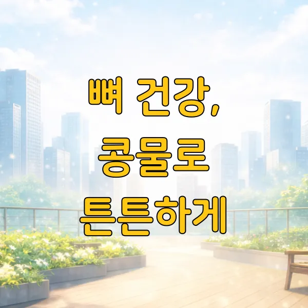 콩에는 칼슘과 이소플라본 성분 이 들어있어서 뼈를 튼튼하게 하는 데 도움을 줄 수 있어요. 특히 뼈 건강이 염려되는 중장년층에게는 더욱 유익하답니다.