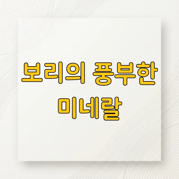 이러한 미네랄들은 뼈 건강을 튼튼하게 하고, 근육 기능 유지, 그리고 체내 수분 균형을 맞추는 데 중요한 역할을 합니다. 보리를 꾸준히 섭취하는 것만으로도 건강에 긍정적인 영향을 줄 수 있을 거예요!